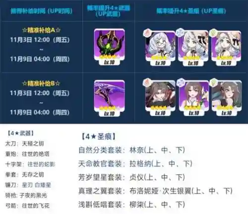 3、《崩坏3》六周年火力补给开始时间为1版本更新后至10月28日12:00。时间范围:1版本更新后,玩家即可参与火力补给活动,该活动将持续到10月28日12:00。补给内容:在活动期间,玩家可以从指定的20件武器和18套圣痕中自选5件武器和5套圣痕,组建专属的补给池,进行抽取。