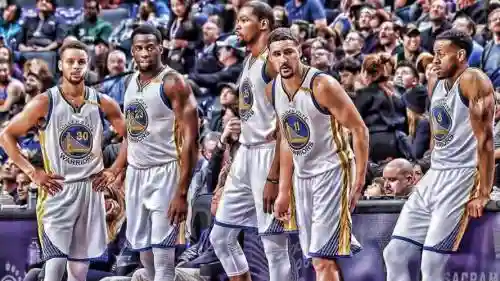 4、克莱-汤普森11号,德雷蒙德-格林23号,安德鲁-博古特12号,安德烈-伊格达拉9号,斯蒂芬-库里30号,肖恩-利文斯顿34号,哈里森-巴恩斯40号,马利斯-斯贝茨5号,费斯图斯-埃泽利31号,莱昂德罗-巴博萨19号。