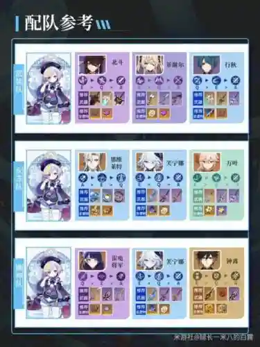 4、冰系队友:第二个推荐的是带上一个冰系角色,比如修女。修女不仅可以给七七加暴击和充能,还能凑出双冰加成,让七七的输出和生存能力都得到提升。 灵活选择:剩下的位置可以根据实际情况选择。