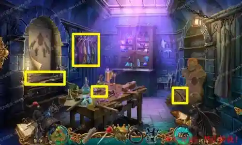 4、第2关攻略图解进入第2关游戏,先把桌子上这个果盘拿走。窗帘这个边有一条绳子。拿走这根金矛。然后把这三者组合起来。捞出水池里的道具。红圈位置有一个宝箱。把碎片放上去,拼出一只章鱼的图案。获得一把钥匙,用钥匙开门,第二关通关。