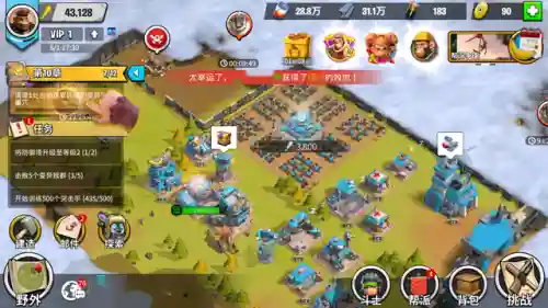 再来看看玩法,《猿族时代》作为一款SLG,在玩法上依然有着COK-like的影子,所有玩家都在超大沙盘中发育和对战,争夺资源,不过目前市面大部分SLG手游都是这样,以弱肉强食为玩点。